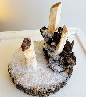 It has been an honour to host artist, Linda Hulme-Leahy's very first solo exhibition, "Reclamation" which will be at Round Hill Studio until October 4th. This collection of assemblages has had onlookers gasping at her clever literary references and chuckling at her sense of humour. "Reclamation" is not only a visual experience, the aroma of willow, sage and lemon balm, provides a full-sensory experience.